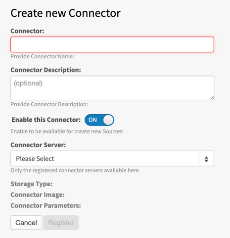 Specify a unique name for the new connector. A short name is recommended due to the limited space on the Sources page to display the icon and name.