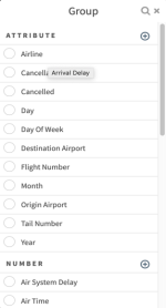 On a visual, select the group label (x-axis label) to view the Group selection dialog.