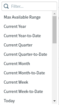 Use the filter box at the top of the presets list to locate the preset setting you want. Descriptions of each of the preset options are provided in Preset Time Ranges.