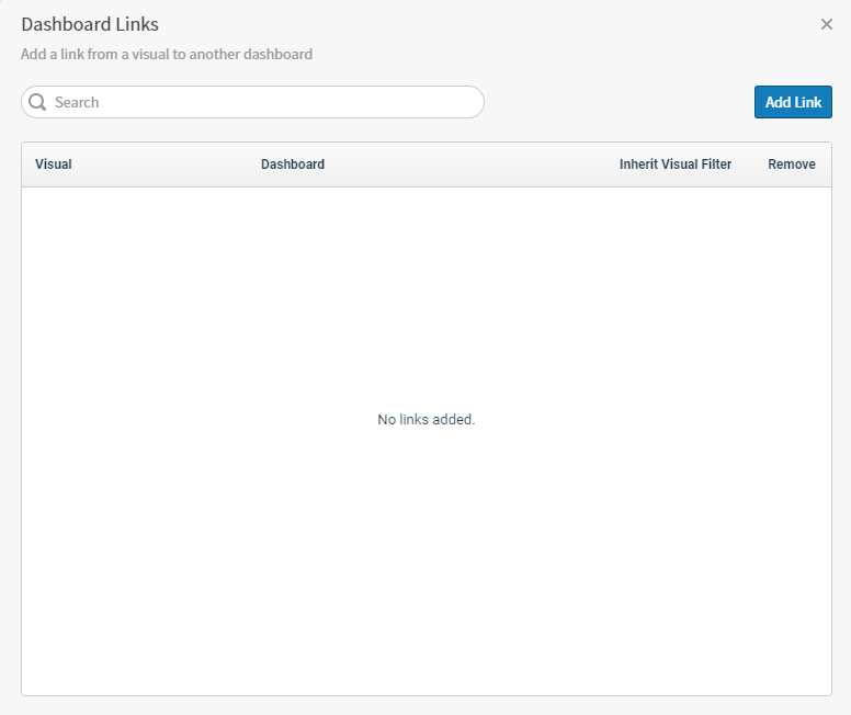 While working with your dashboard, you may need to analyze data from other dashboards. You can link a visual from your dashboard to another dashboard. This allows you to quickly access other dashboards with related information. To link dashboards, you must have permissions to share and link dashboards. When linking one dashboard to another, you can elect to have the target dashboard inherit the filters from the source dashboard.