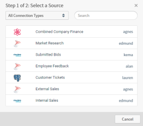 Select Add Visual to add a new visual. The Select a Source dialog appears.